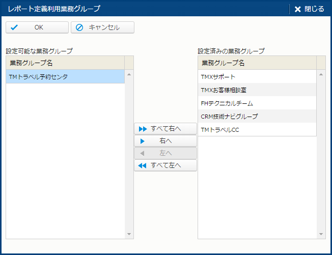 | 設定済みの業務グループ | 現在設定されている業務グループ。 |
