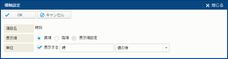 | 横軸 | - | - | - | [横軸] として設定する項目を [集計項目設定] サブウィンドウで設定する。 |