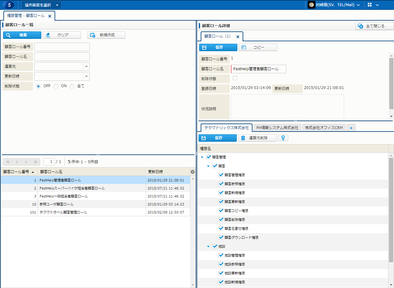 | 新規作成 | 顧客ロールを新規に作成する。 | 顧客ロール新規権限 |