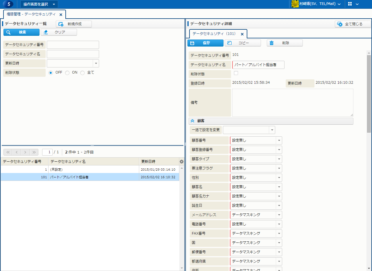 データセキュリティを識別する一意の番号。システムが自動で付与する。 |