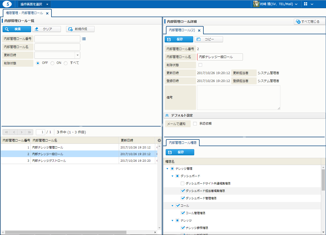 | 新規作成 | サイトロールを新規に作成する。 | サイトロール新規権限 |