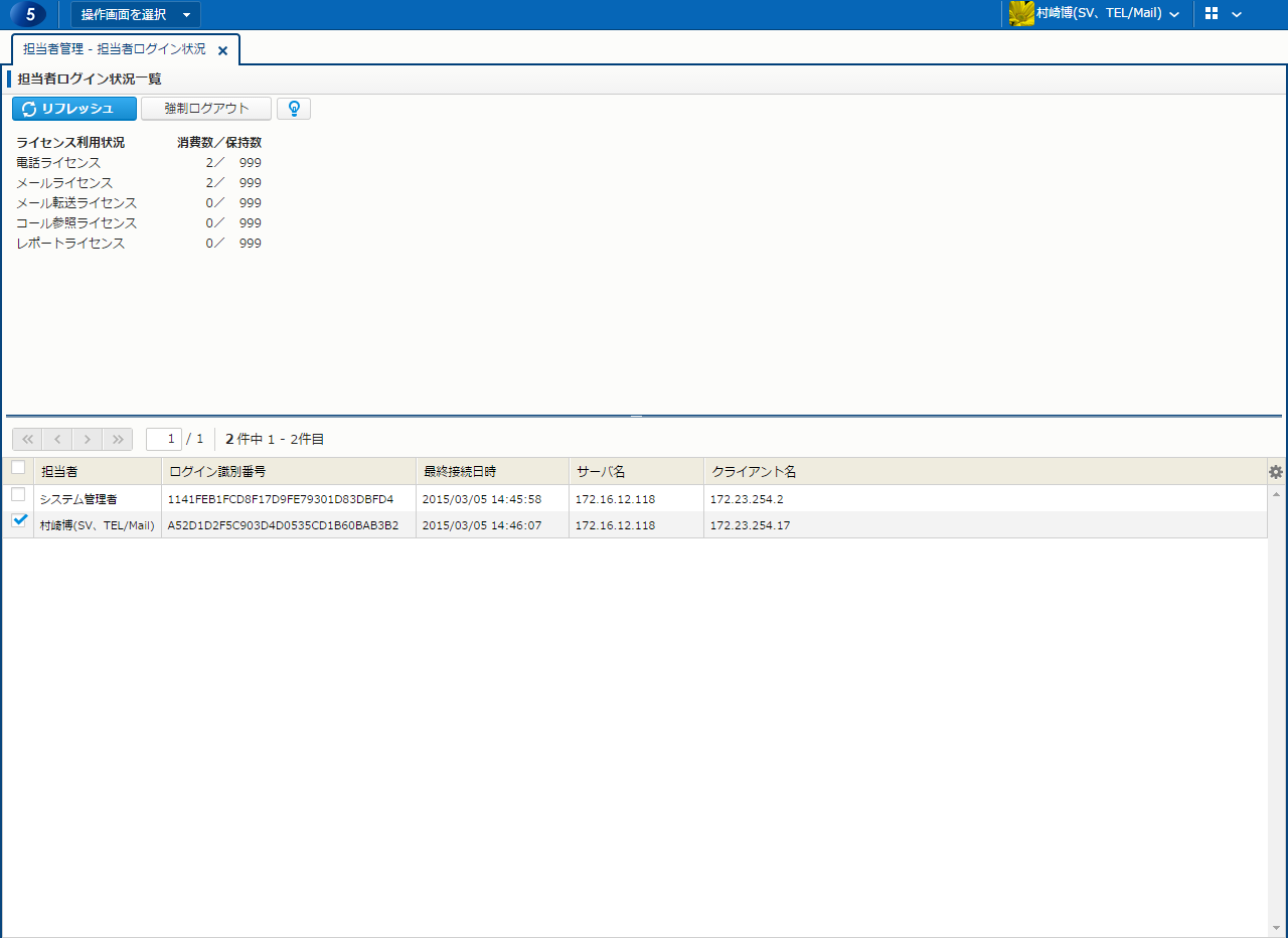 | リフレッシュ | 担当者ログイン状況一覧が最新に更新される。 | 担当者ログイン状況参照権限 |