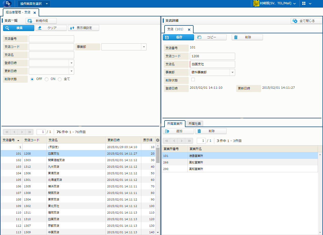 | 事業部 | - | 選択リスト | - | その支店が所属する事業部名。