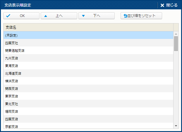 | 表示順設定 | 支店の表示順を設定する。 [表示順設定] サブウィンドウが表示される。 |