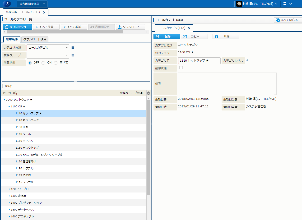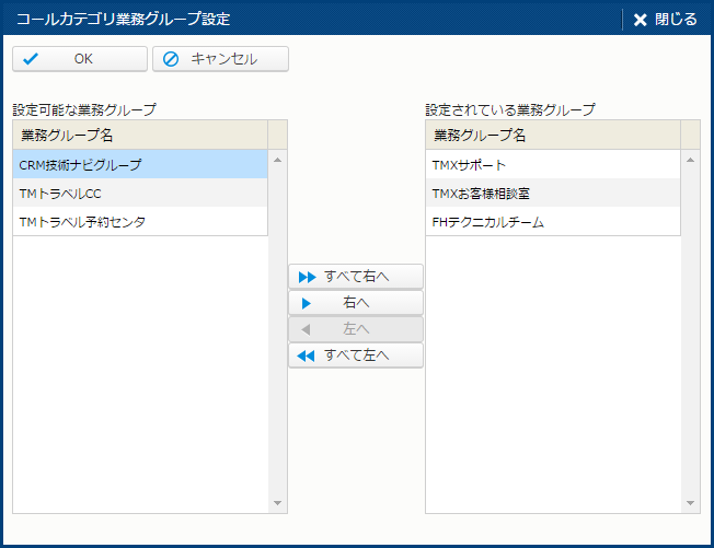 コールカテゴリ業務グループ設定
