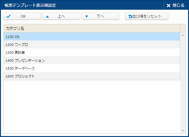 | OK | 矢印キーで変更した表示順を確定する。 | - |
