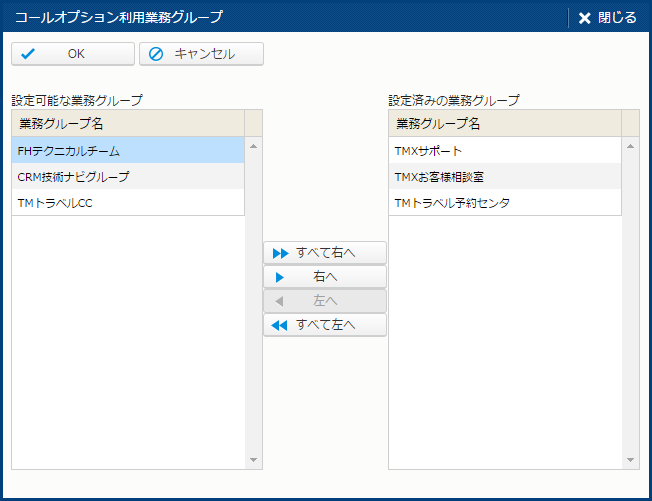 | 設定済みの業務グループ | - | リストボックス | - | 現在設定されている業務グループ。 |