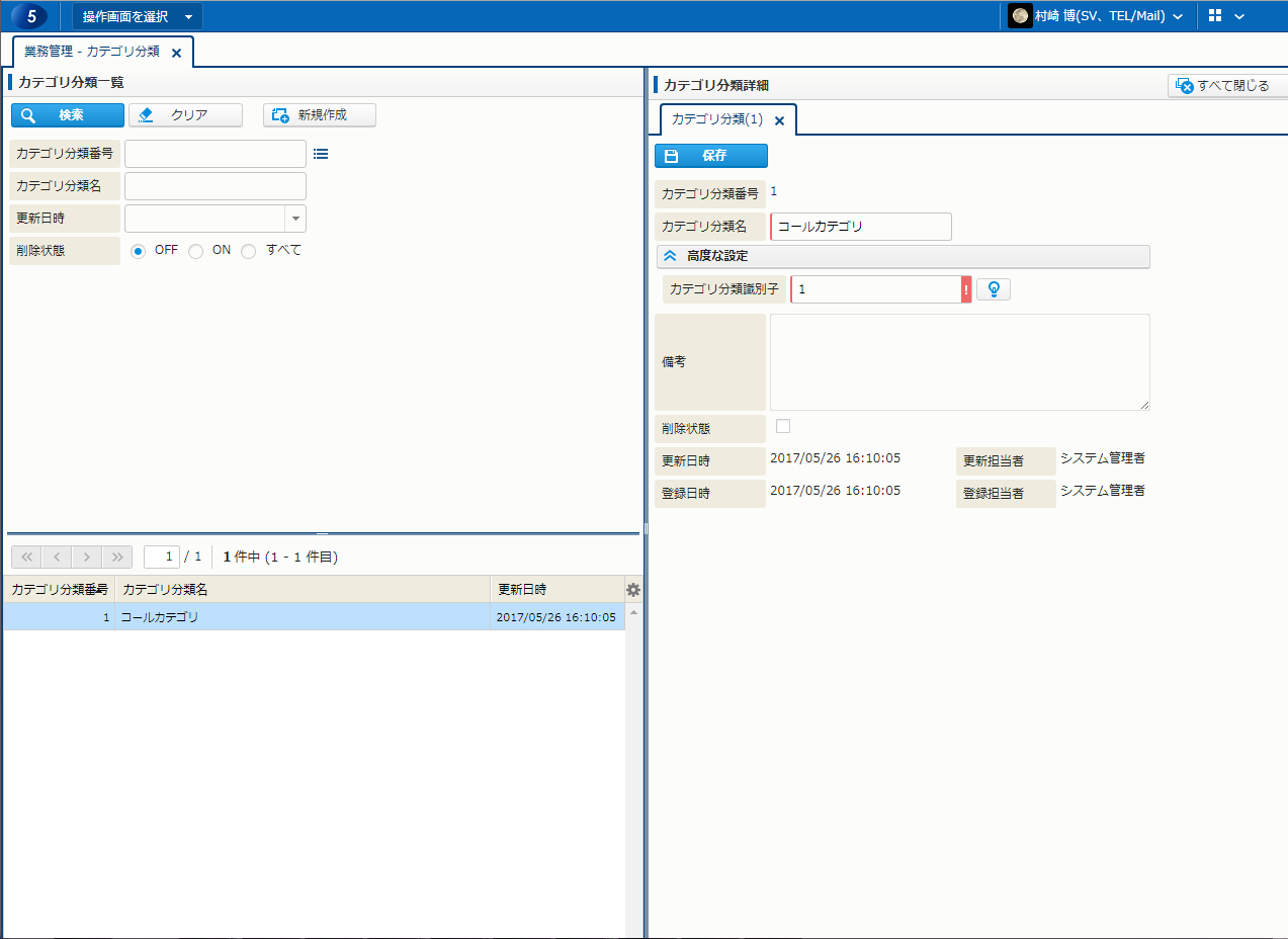 カテゴリ分類を識別する一意の番号。システムが自動で付与する。 |