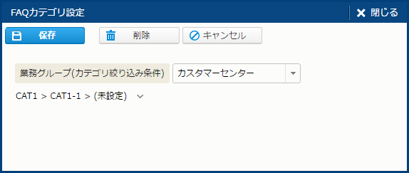| 編集 | 既存のカテゴリを編集する。 [FAQカテゴリ設定] サブウィンドウが開く。 |