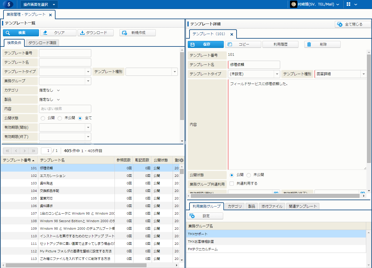 テンプレート利用業務グループ