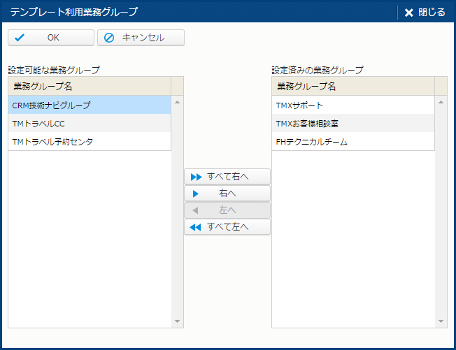 | 設定済みの業務グループ | 現在設定されている業務グループ。 |