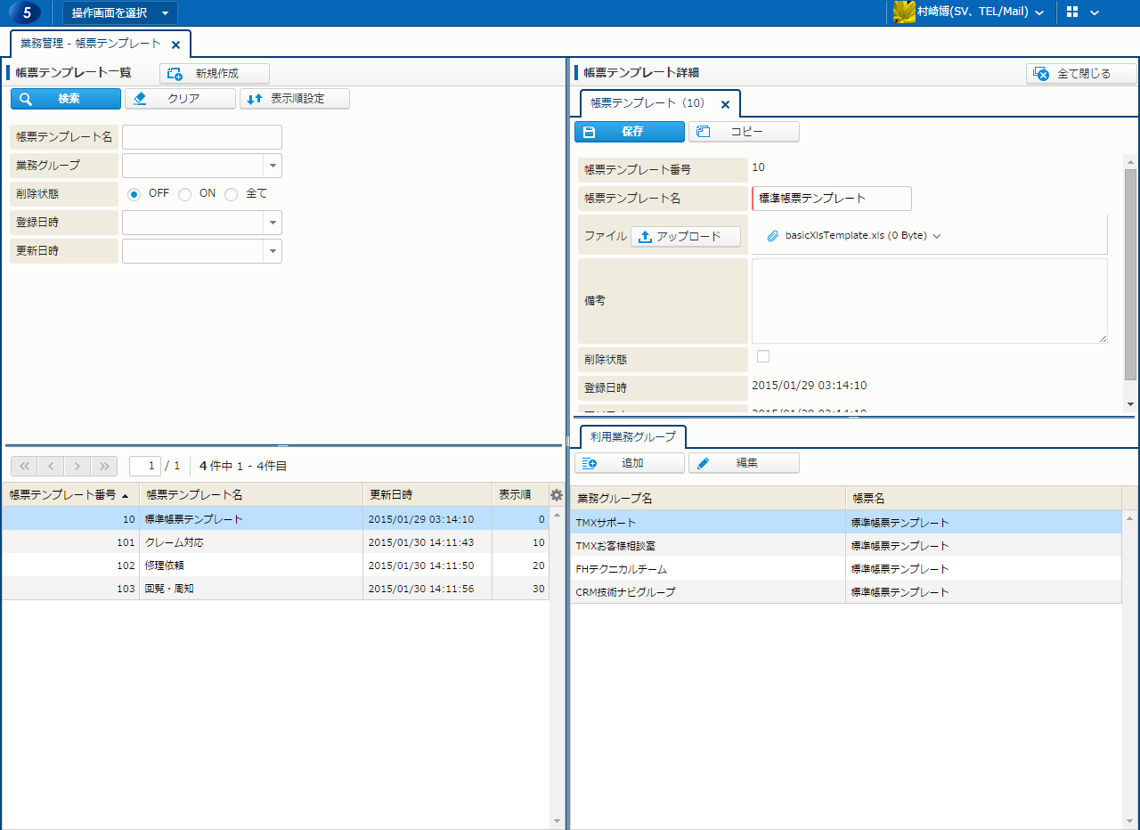 | 業務グループ | 帳票テンプレートを利用する業務グループ。 |