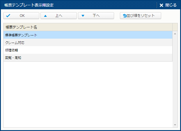 帳票テンプレート表示順設定