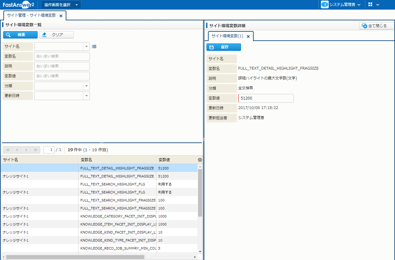 | 検索 | 変数を検索する。 | サイト環境変数参照権限/拡張参照権限 |