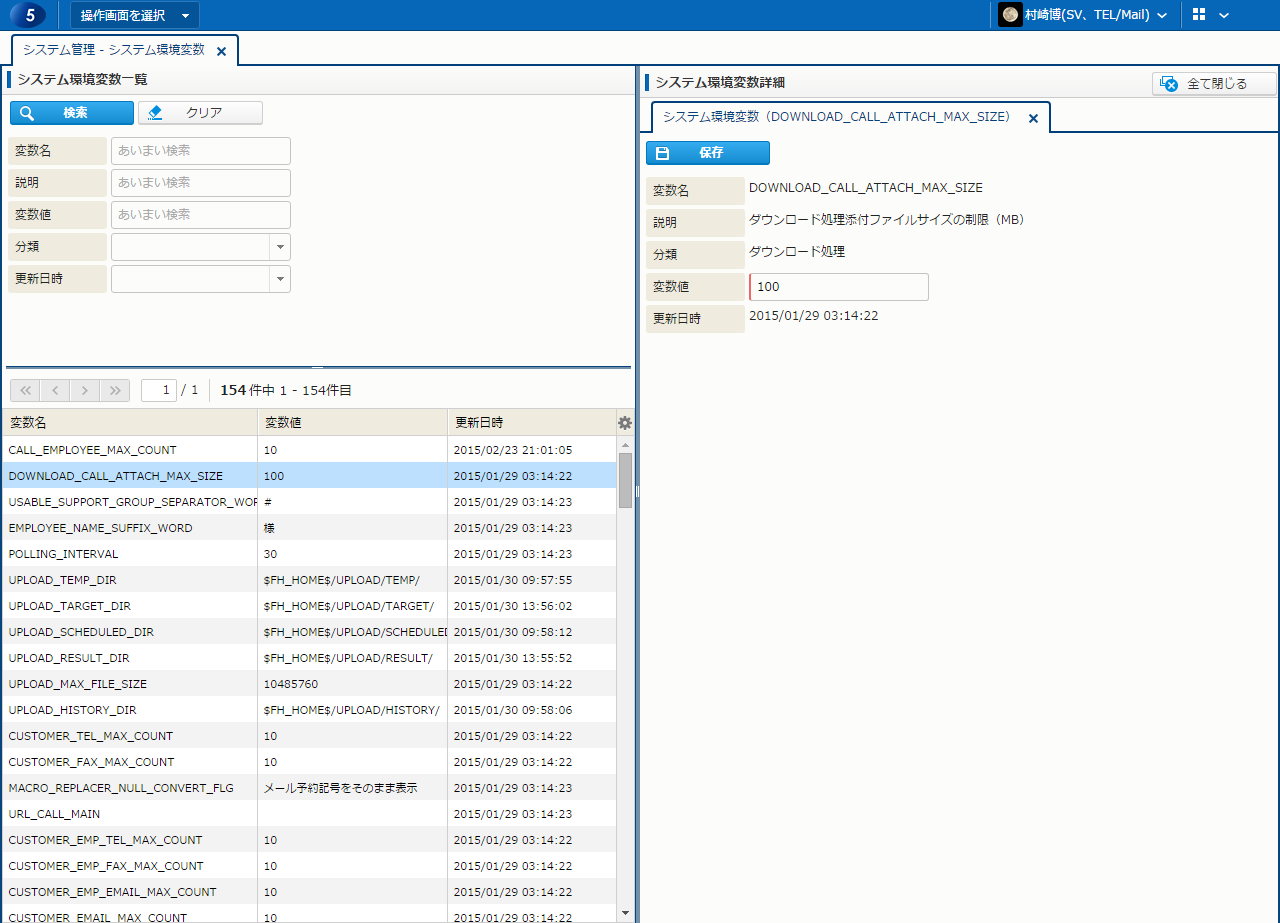 | 保存 | 表示内容で保存する。 | システム環境変数更新権限/拡張更新権限 |